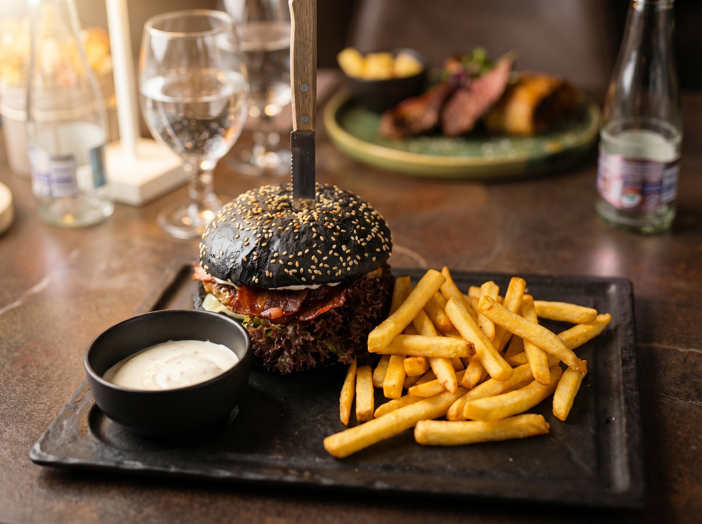 Harapj bele jellegzetes szénbucis burgerünkbe — ropogós szalonnával, friss salátával és lédús húspogácsával, aranybarna sült krumplival és krémes mártogatóval. A Cafe Mediterranean Seaside-ban klasszikus grill kedvencek várnak meleg, barátságos hangulatban. Foglalj asztalt, és tapasztald meg a mediterrán ízeket! #proplate